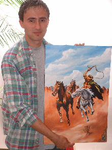 A képek NEM eladók. Általában folyamatosan megrendelésre festek, így nemnagyon van raktáron képem. Az itt látható képek csak azt hivatottak bemutatni, hogy milyen stílusban festek, milyen méretben -esetleg milyen áron. Ha konkrétan az érdekel hogy milyen képem van ami rögtön elvihető akkor írj e-mailt (vagy telefonálj) és e-mailben küldök tájékoztatót.